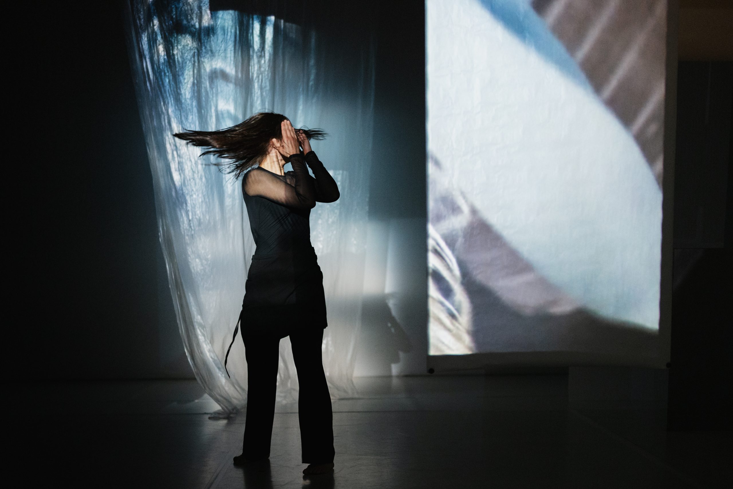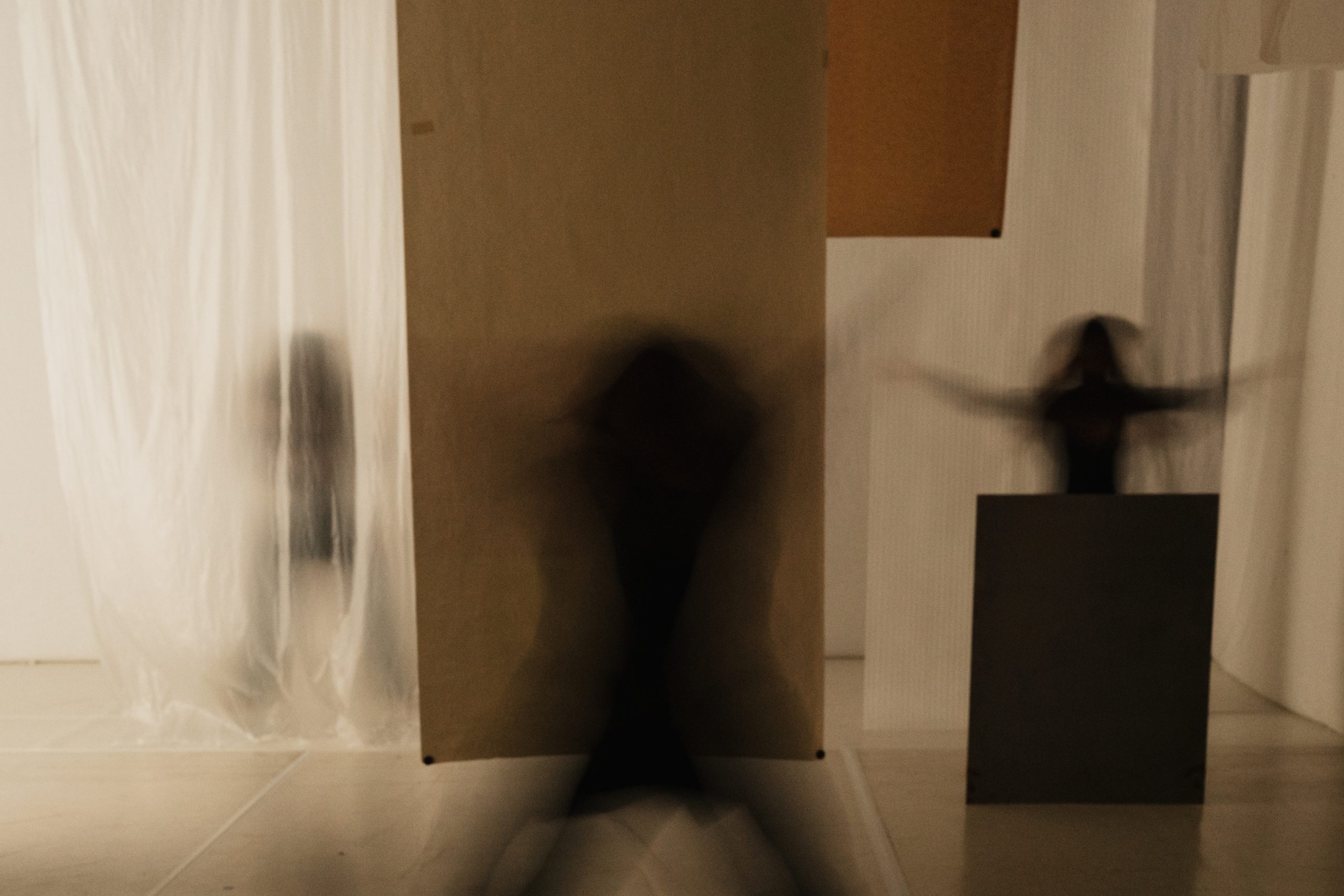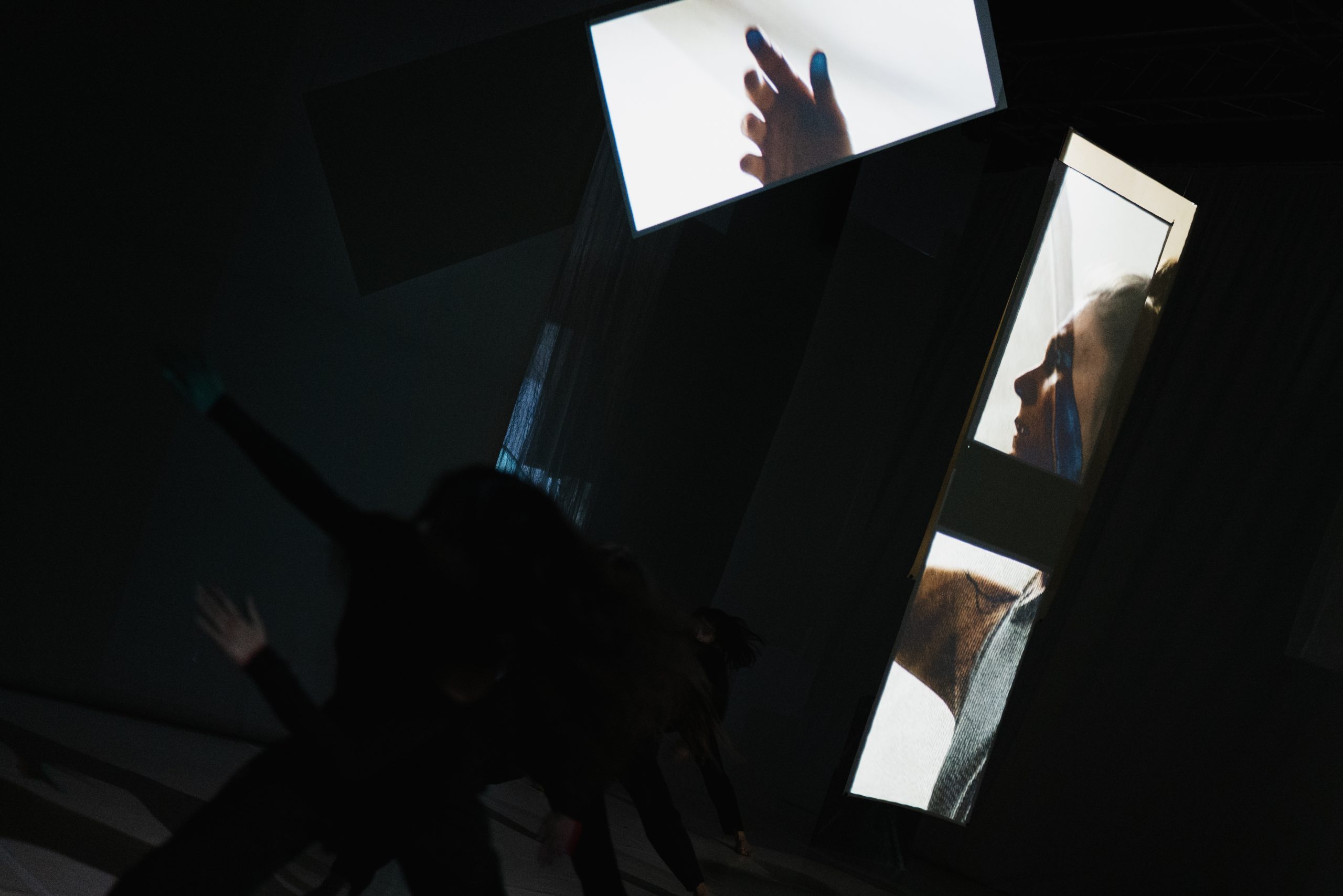 Choreography of shadows and light, nearness and absence, creates a living kaleidoscope that twists the audience’s perception of bodies’ presence, way of being.